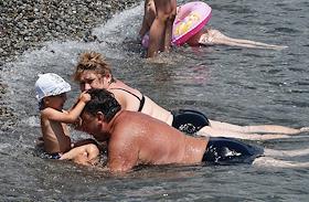 Жанровая фотография. Виды Крыма. Отдыхающие на пляже. Семья с ребенком в море.