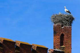 Жанровая фотография. Гнездо аиста на территории замка Шаакен в Калининградской области.