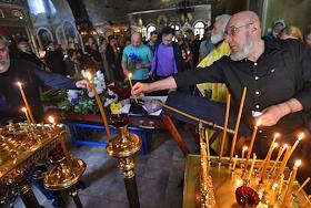 Сотрудник ИД "Коммерсантъ" Михаил Столовицкий. Отпевание фотографа Василий Шапошникова в храме Всех Святых