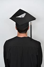 Обложка для журнала "Деньги". Мужчина в академической шапочке и мантии.