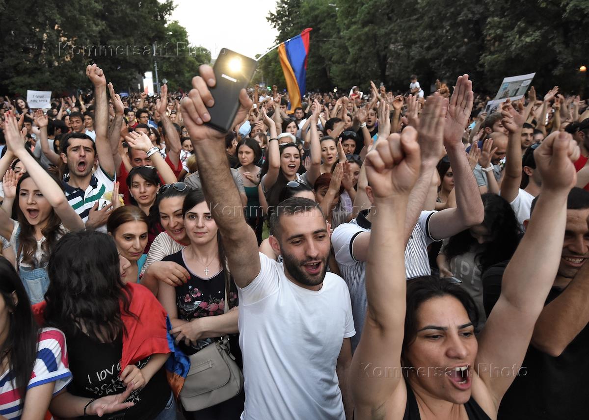 Политическая ситуация в Ереване. Участники акции против подорожания электроэнергии в центре города.