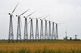 Мирновская ВЭС (ветроэлектростанция).В Крыму работают 7 объектов ветроэнергетики (522 ветроагрегата мощностью 59,8 МВт).