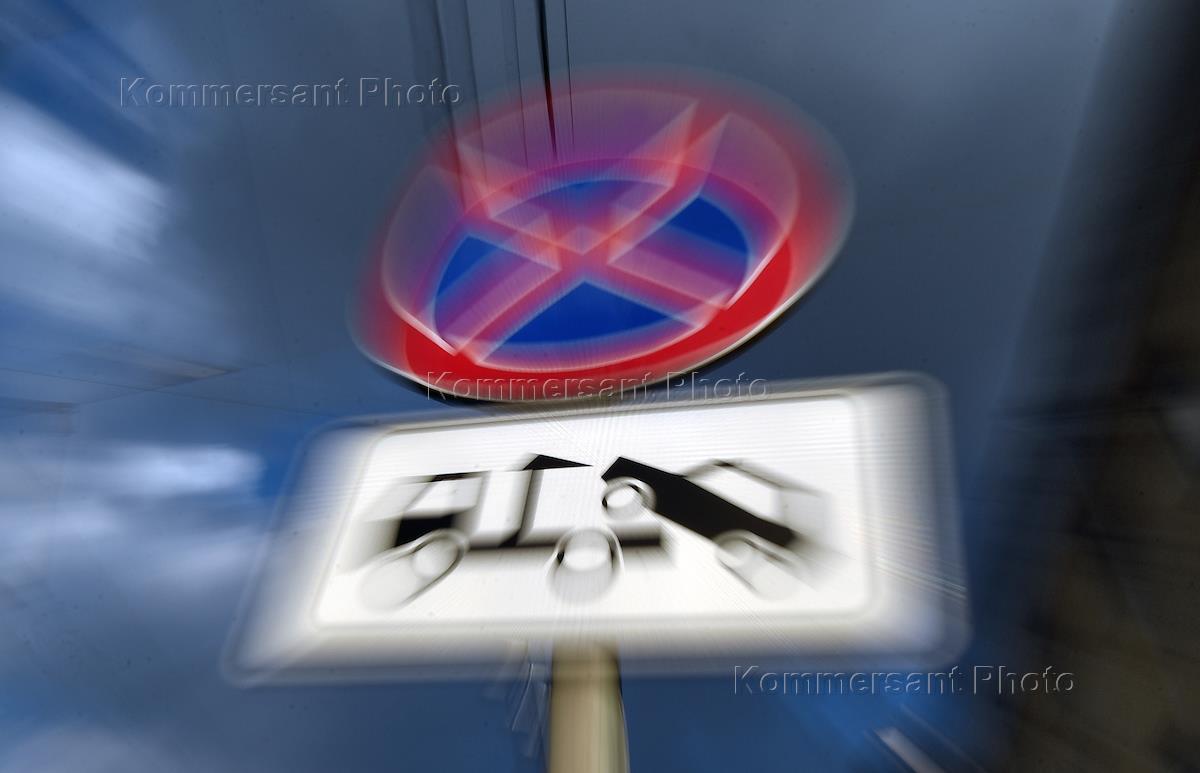 Жанровая фотография. Дорожный знак, предупреждающий о возможной эвакуации автомобилей, на Садовом…