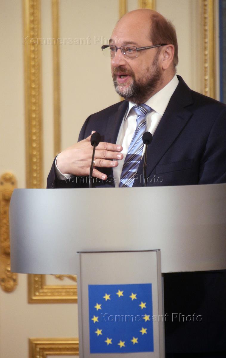 Председатель Европейского парламента Мартин Шульц во время пресс-конференции по итогам встречи с…
