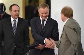 Слева направо: председатель комитета Государственной думы России по образованию Вячеслав Никонов,…
