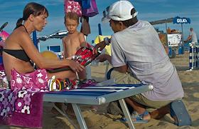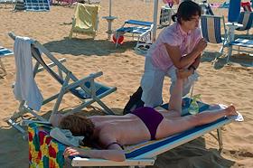 Курортный городе Лидо-ди-Йезоло (Lido di Jesolo). Китайский массаж на пляже.