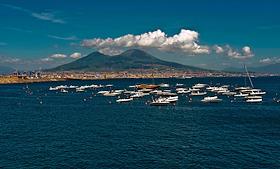 Город Сирмионе на озере Гарда. Скульптура на фоне Замка Скалигеров.