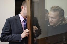 Директор журнала "Флирт" Дмитрий Зяблицев (справа), обвиняемый в организации проституции, во время…
