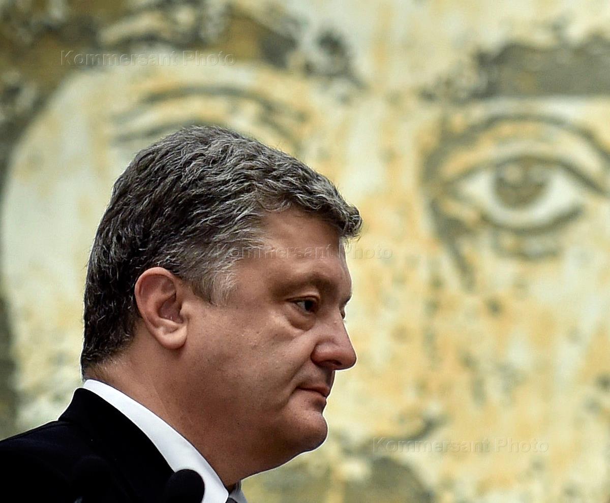 Президент Украины Петр Порошенко во время церемонии открытия фрески Героя Украины Сергея Нигояна в…