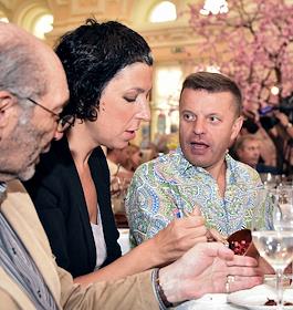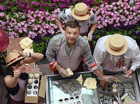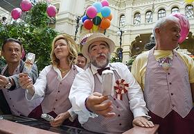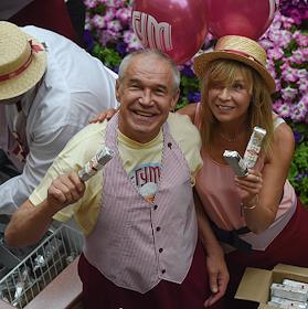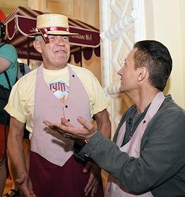 Телеведущий Леонид Парфенов (в центре) на празднике мороженого в московском ГУМе.