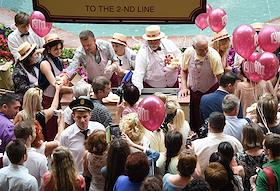Телеведущий Леонид Парфенов (в центре) на празднике мороженого в московском ГУМе.