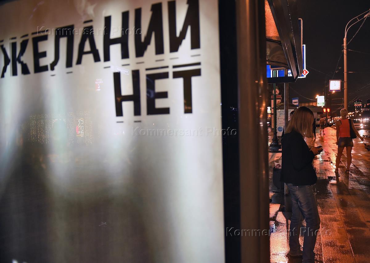 Жанровая фотография. Надпись на остановке "Желаний нет".