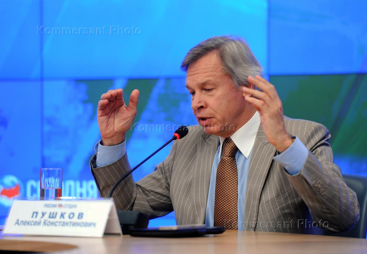 Пресс-конференция председателя комитета ГД по международным делам Алексея Пушкова.