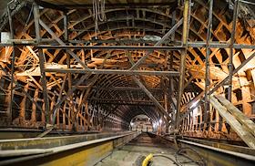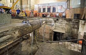 Работы по замене эскалатора и реконструкции вестибюля станции "Бауманская" московского метрополитена.