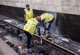 Ремонтные работы на закрытом участке Сокольнической линии Московского метрополитена.