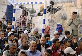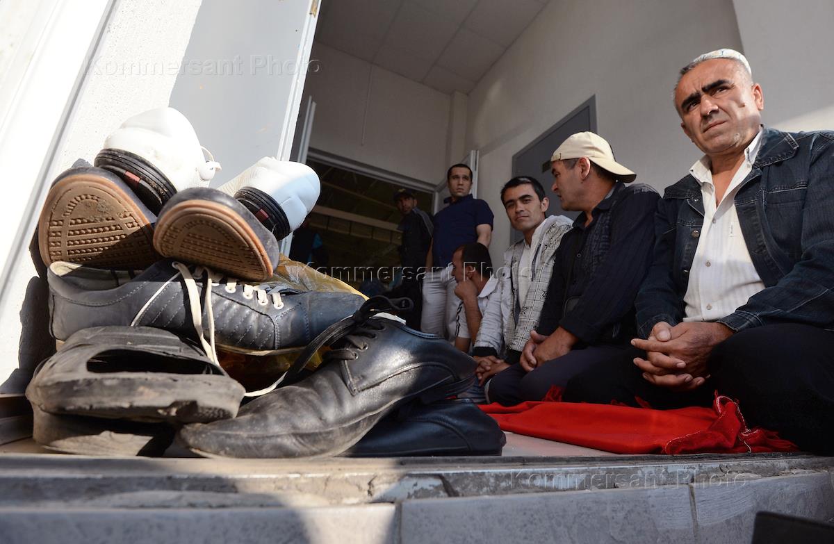Мусульмане в день праздника Ураза-байрам во Дворце спорта "Пушкино".