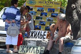 Жанровая фотография. Люди предлагают туристам жилье и экскурсии.