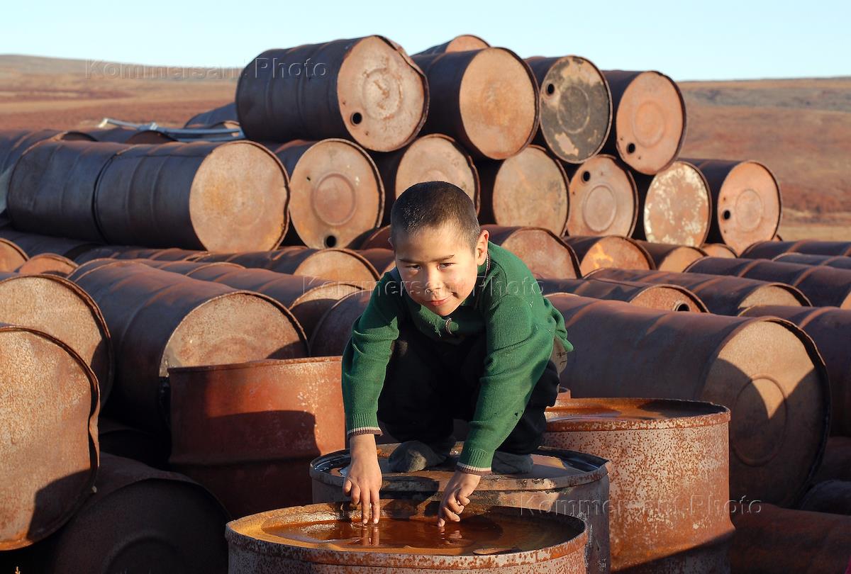Жанровая фотография. Ребенок и бочки из-под горючего.