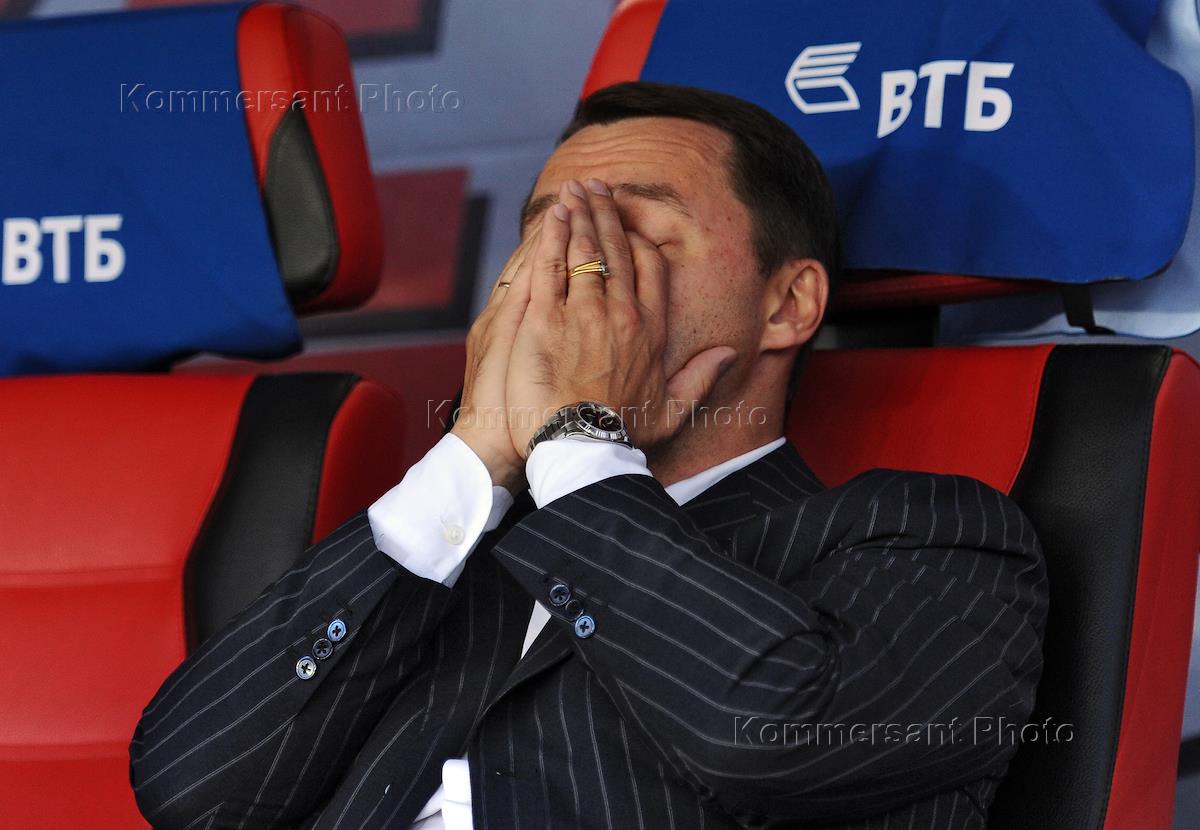 Чемпионат России по футболу 2015/2016, 2-й тур. Главный тренер ФК "Динамо" Андрей Кобелев во время…