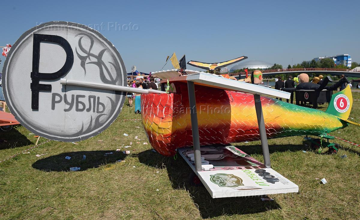 Участники фестиваля самодельных летательных аппаратов "Red Bull Flugtag 2015" на Гребном канале.