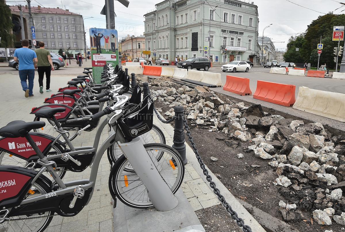 Виды Москвы. Дорожные работы на площади Никитские ворота.