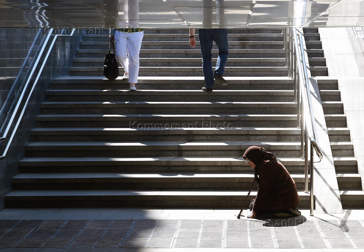 Жанровая фотография. Женщина просит милостыню в подземном переходе.