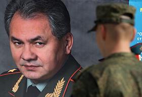 Портрет министра обороны России Сергея Шойгу на открытии международного конкурса "Отличники…