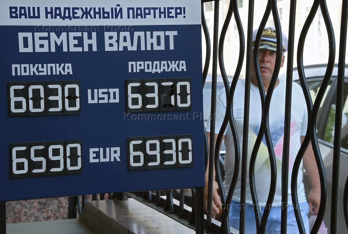 Жанровая фотография. Информационное табло с курсом американского доллара, евро пунта обмена валют на…