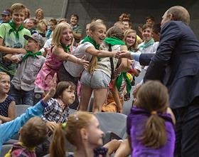Президент России Владимир Путин (в центре) во время посещения Центра океанографии и морской биологии…