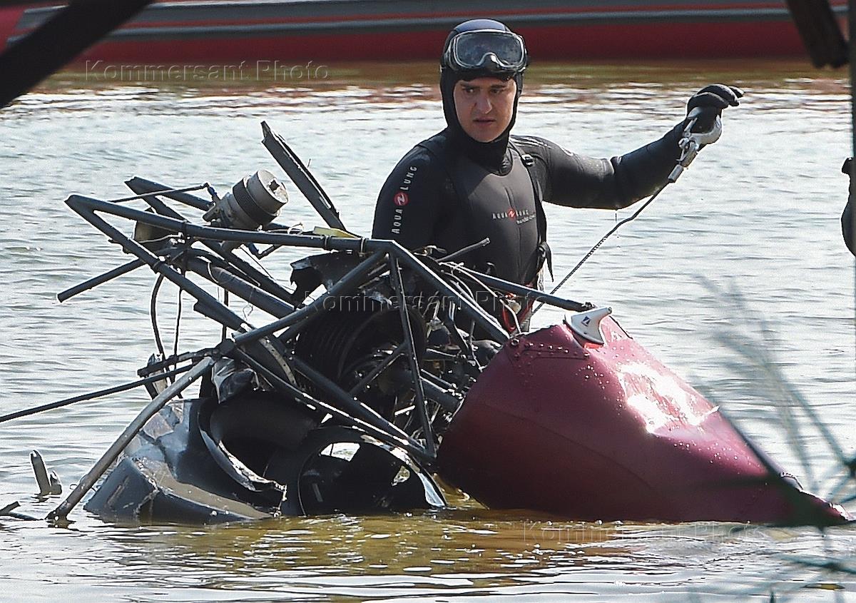 Поиск погибших на месте столкновения вертолета Robinson 44 и гидросамолета на Истринском водохранилище.