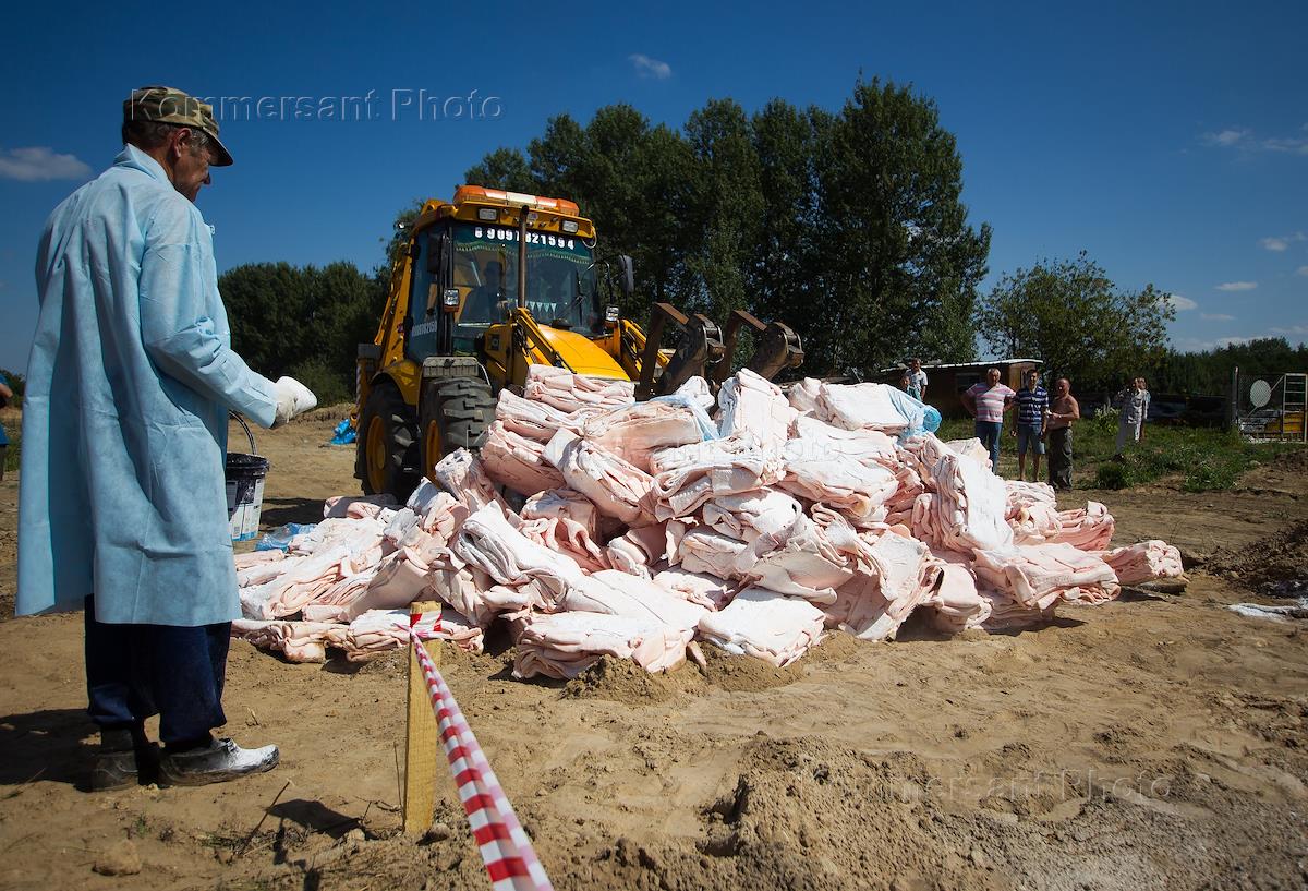 Уничтожение санкционных продуктов на полигоне под Багратионовском. Свиное сало, изъятое на…