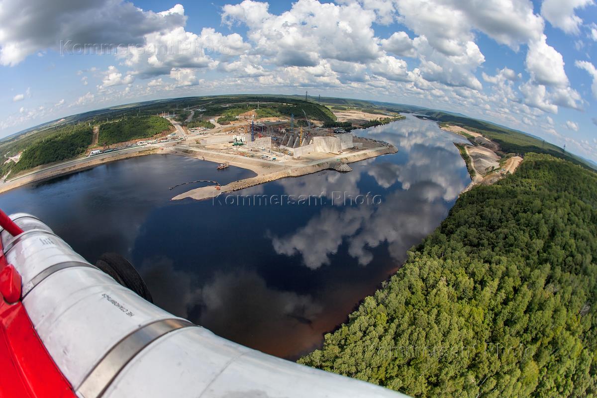Строительстьво Нижне-Бурейской ГЭС в поселке Новобурейский, Бурейского района. Вид из салона…