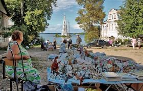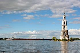 Жанровая фотография. Продавцы сувениров на берегу Волги напротив затопленной колокольни Никольского…