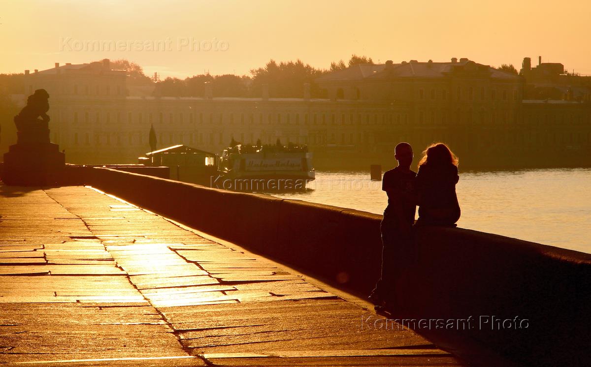 Жанровая фотография. Раннее летнее утро на набережных Невы. Набережная лейтенанта Шмидта.