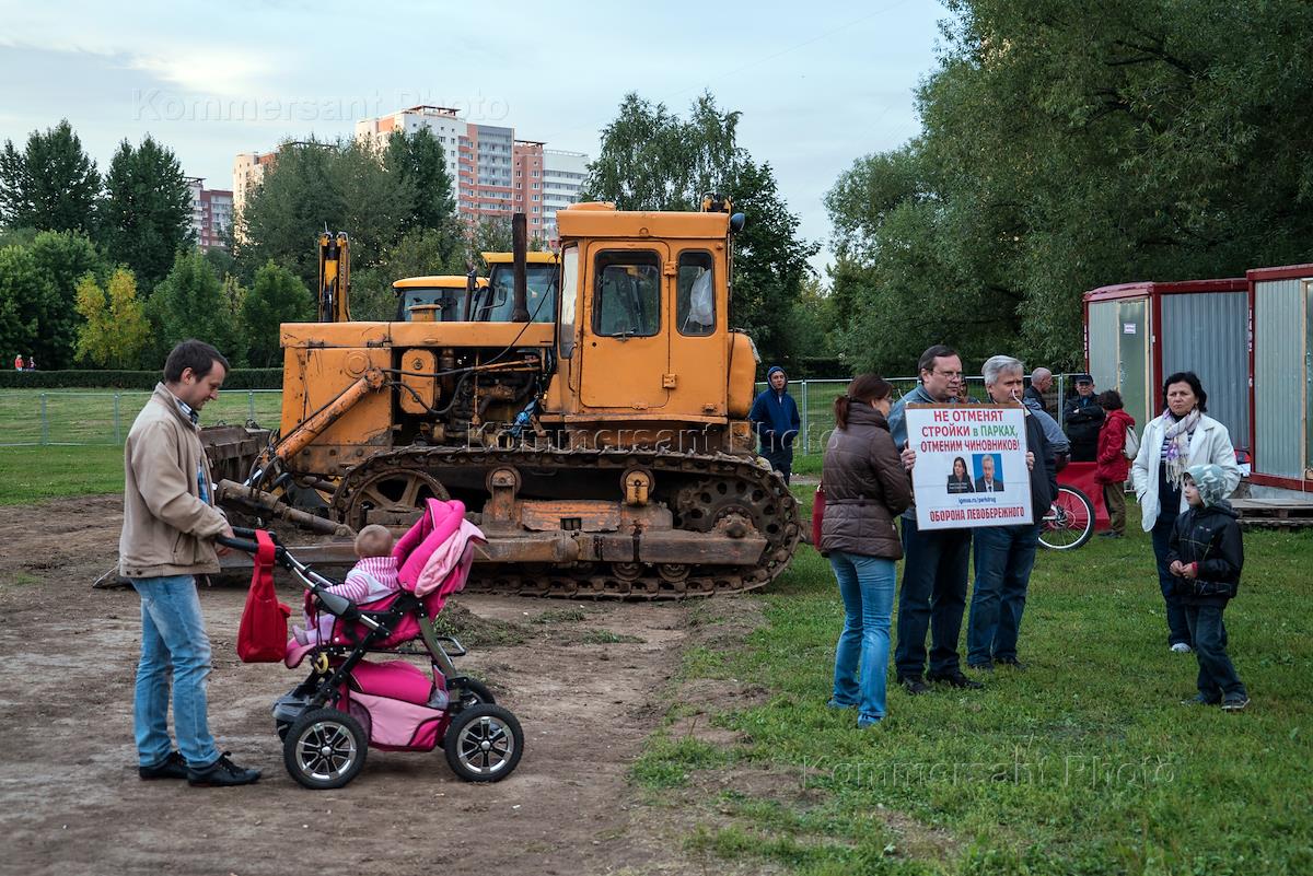 Протест против строительства футбольного поля и сопутствующих построек на территории парка Дружбы в Москве.