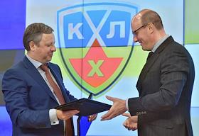 Президент Контитентальной хоккейной лиги (КХЛ) Дмитрий Чернышенко (слева) и президент ОАО…