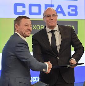 Заместитель председателя правления АО "СОГАЗ" Дамир Аксянов (слева) и президент Контитентальной…