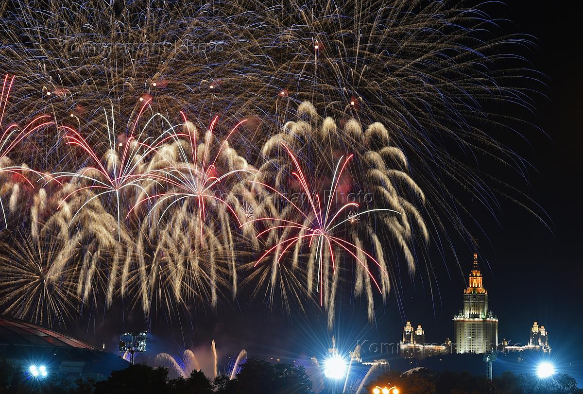 Международный фестиваль фейерверков "Ростех" прошел на смотровой площадке "Воробьёвы горы".
