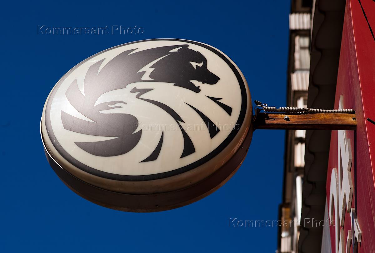 Жанровая фотография. Эмблема банка "Русский стандарт" на здании офиса отделения банка.