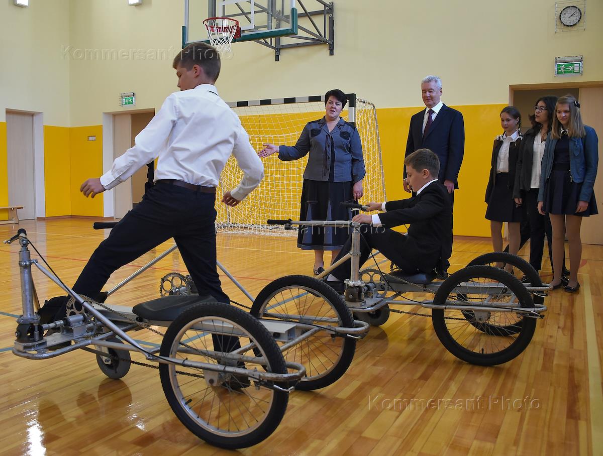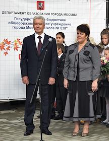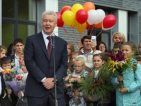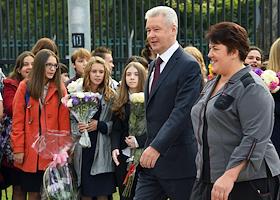 Мэр Москвы Сергей Собянин (в центре) во время посещения школы №830 в День знаний.