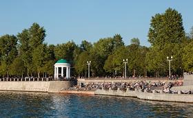 Виды Москвы. Пушкинская набережная, кафе "Оливковый пляж" в Парке Горького.