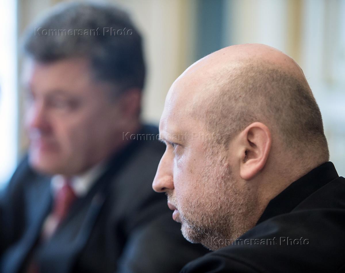 Секретарь Совета национальной безопасности и обороны Украины Александр Турчинов (справа) и президент…