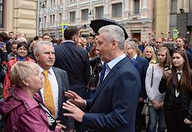 Мэр Москвы Сергей Собянин время осмотра итогов комплексного благоустройства Мясницкой улицы и улиц,…