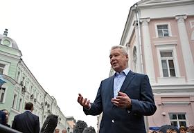 Мэр Москвы Сергей Собянин во время осмотра итогов комплексного благоустройства Мясницкой улицы и…