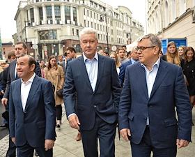 Мэр Москвы Сергей Собянин (в центре) во время осмотра итогов комплексного благоустройства Мясницкой…
