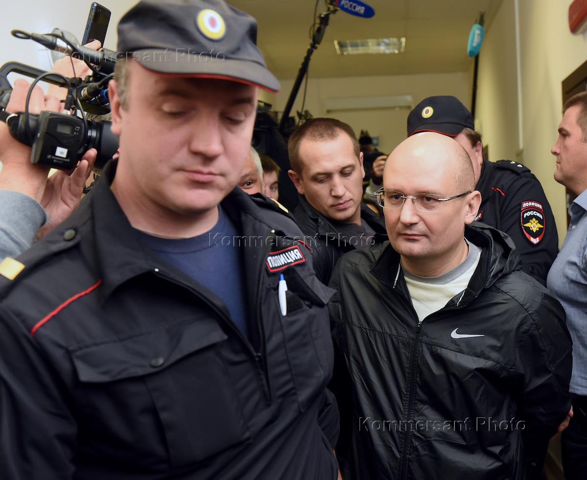 Заседание суда по вопросу об избрании меры пресечения для обвиняемого по делу о незаконном хранении оружия Александра Горбунова