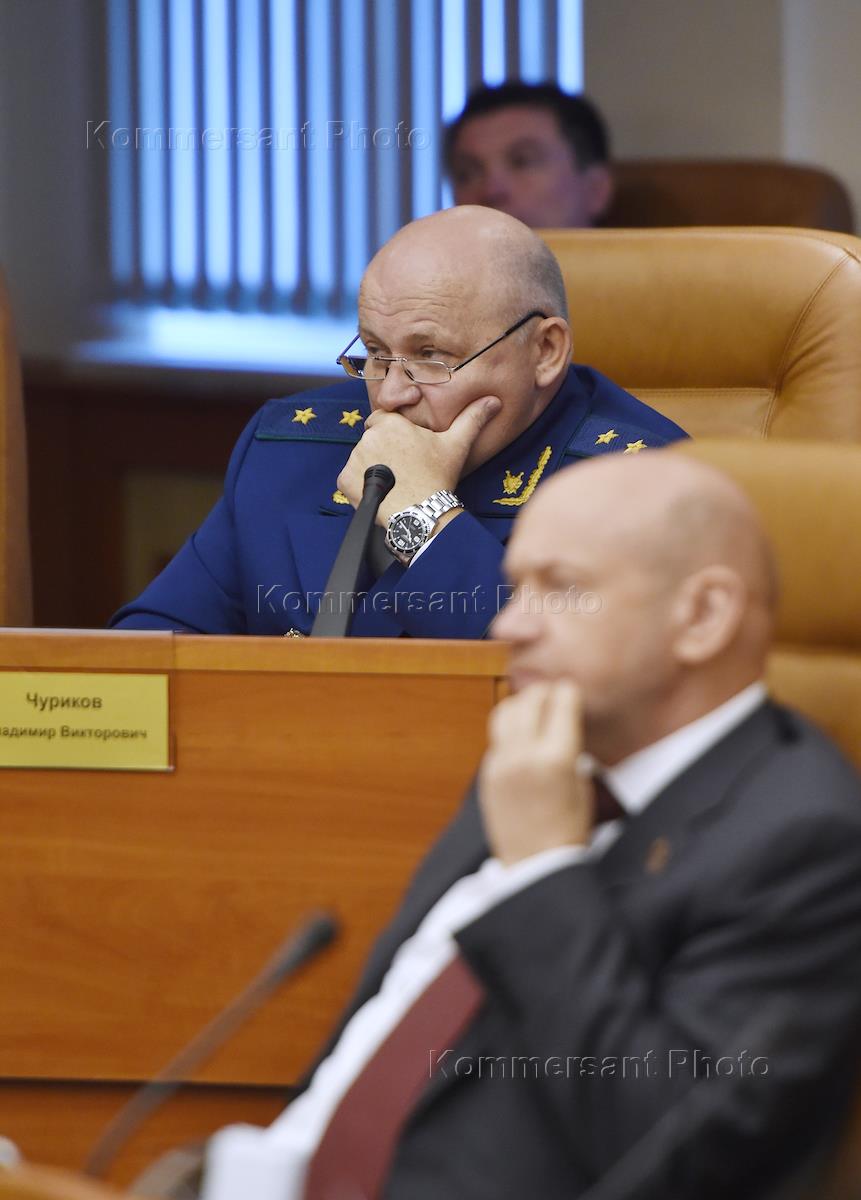 Прокурор Волгоградской области Владимир Чуриков (справа) на заседании Московской городской думы, во…