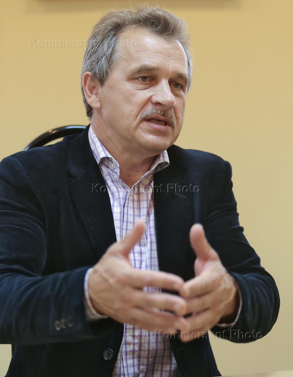 Глава Объединенной гражданской партии (ОГП) Белоруссии Анатолий Лебедько во время интервью.