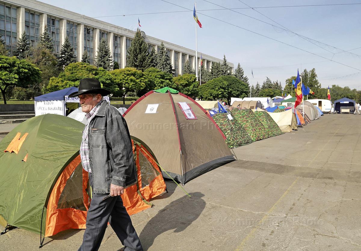 Акция протеста и палаточный лагерь участников антиправительственного митинга в центре Кишинева.