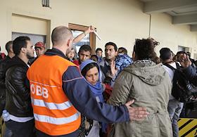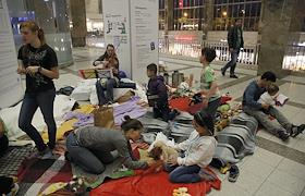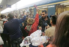 Мигранты с Ближнего востока и Северной Африки прибывшие в Вену из Будапешта. Станция Уэст Банкхофф.
